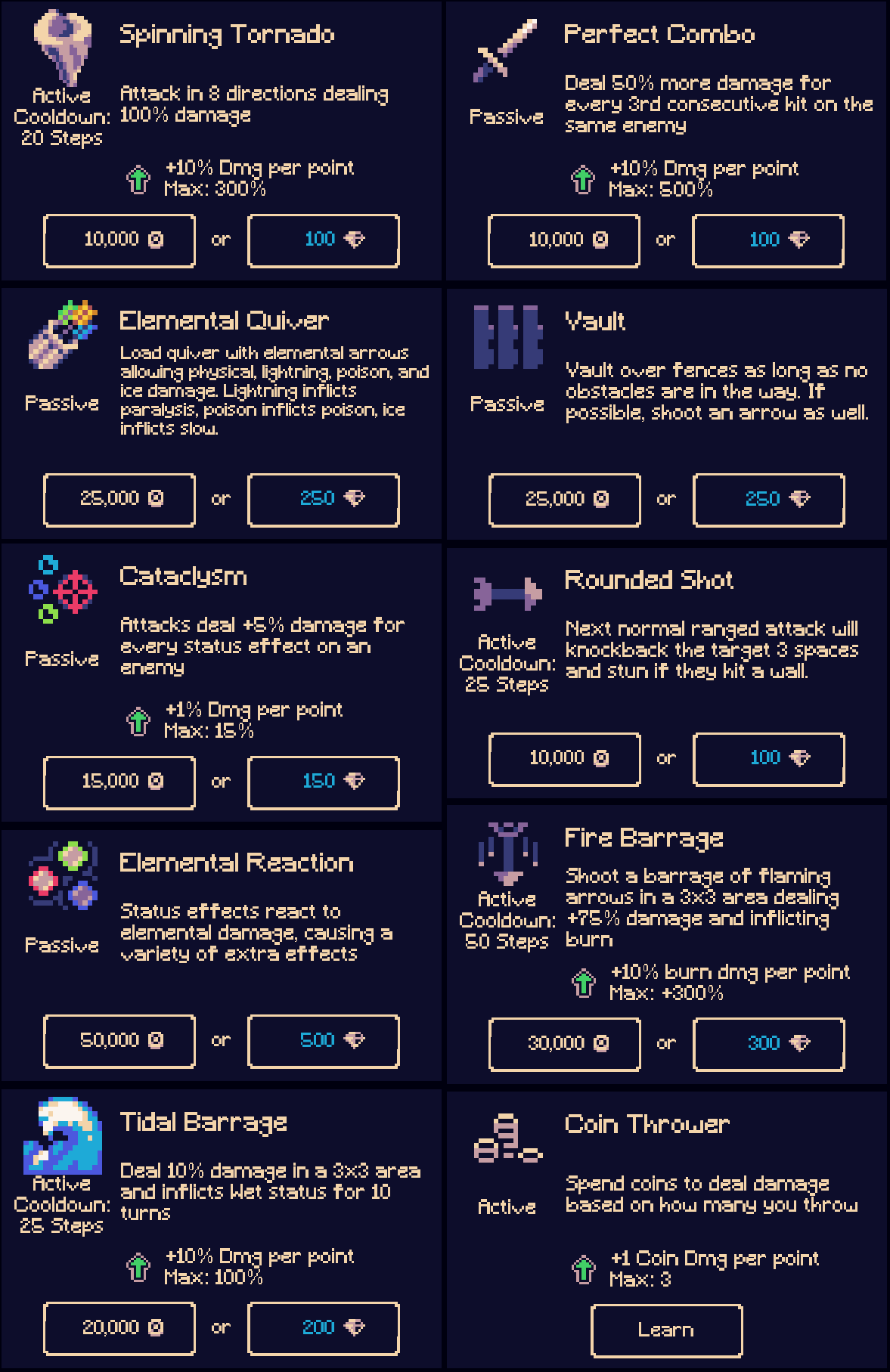 • Reduced Ethereal Shot upgrade per point from +20% -> +10% per point